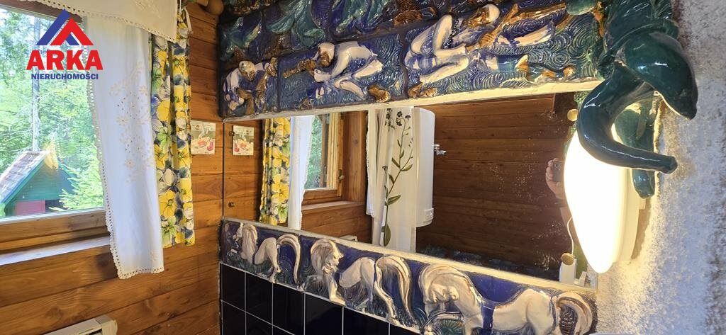 Działka położona w lesie z kilkoma pięknymi sosnami na terenie działki. Ponadto działka w całości zagospodarowana z wieloma ozdobnymi krzewami. W granicy działki przepływa mały strumyczek (bez zagrożenia wylaniem na działkę - nie było przez ponad 40 lat takiej sytuacji)